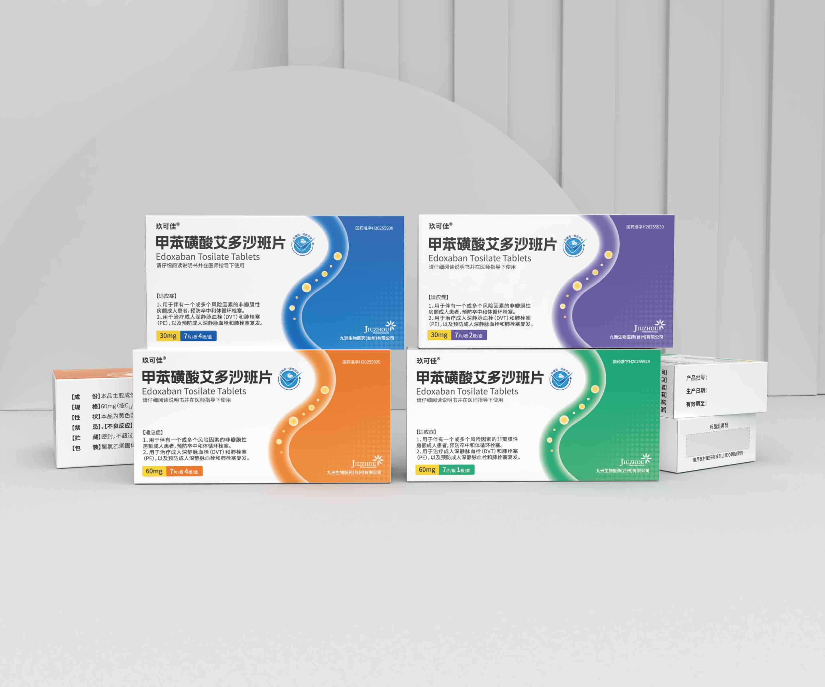 隨著新型口服抗凝藥(NOAC)市場(chǎng)競(jìng)爭(zhēng)日趨激烈,九洲生物醫(yī)藥的艾多沙班片(一種用于預(yù)防非瓣膜性房顫患者卒中的Xa因子直接抑制劑)面臨品牌突圍的關(guān)鍵挑戰(zhàn)。為在眾多同類產(chǎn)品中建立清晰的品牌識(shí)別、精準(zhǔn)傳達(dá)“有效抗凝、安心生活”的產(chǎn)品理念,并確保多規(guī)格用藥安全,石特大健康承接其品牌與包裝全案設(shè)計(jì),旨在打造一個(gè)兼具高端醫(yī)學(xué)專業(yè)性與人文關(guān)懷的品牌視覺體系。